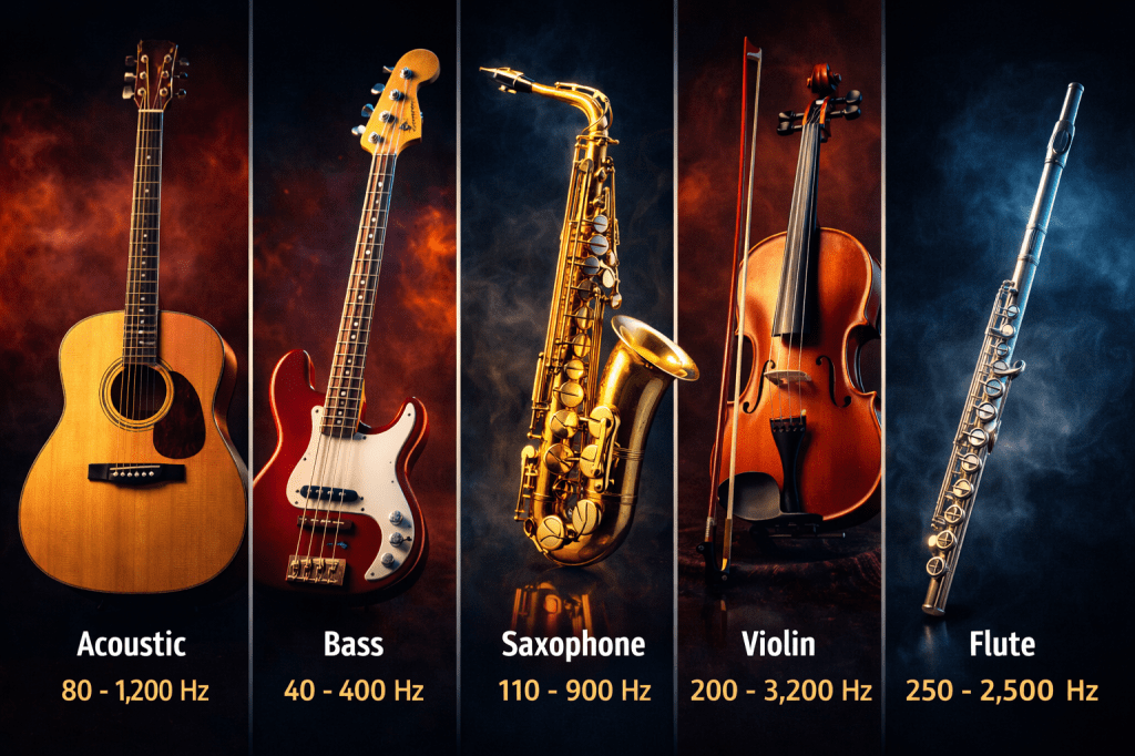 - Acoustic guitar → 80–120 Hz